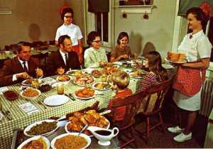 After the First World War restaurants became cleaner, more informal, and alcohol-free — and they did more business than ever before. Families were especially attracted to cafeterias, particularly on the West Coast where they thrived. As more families acquired cars, the custom developed of taking a country drive on Sundays, capped off by an early dinner at a roadside inn or tea room. Children’s menus appeared, such as those of California’s Pig ‘N Whistle chain in 1937. The South’s S&W cafeteria chain began to present weekly children’s entertainment nights in 1939. Thanks to rising incomes, more vacations, and a pro-family culture, the restaurant industry of the 1950s saw families as the customer base of the future. “You get a picture of the powerful social and economic trends working in your favor,” an advertising agency spokesman told a restaurant association in 1955.