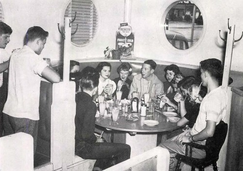 It’s harder to track high school students, at least until the 40s and 50s when their consumption of snack foods such as hamburgers, sodas, and pizzas became noticeable. Like college students before them they tended to favor informal meals eaten at odd hours of the day and night.