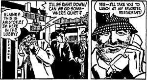 Tea rooms were also singled out in the teens and 1920s for their peacefulness. Very likely the absence of alcoholic beverages in them played a big role. NYC’s Colonia had “a quiet atmosphere that appeals to the woman of culture,” while in Greenwich Village the women proprietors of The Candlestick provided a luncheon setting “without the annoyance of shrieks, laughter, loud talking and noises that seem to be the necessary accessories of every other similar place in our Village, perhaps in order to create ‘bohemian atmosphere.’” Yet drinking did not inevitably lead to din. Rather surprisingly, the speakeasy restaurant was seen by some as a quiet, relaxing haven where attentive waiters served well-behaved patrons united in a “civilized conspiracy.”