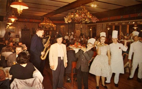 However, there were some exceptions along the way. The upstanding Craftsman Restaurant in NYC eschewed artificial gaiety. A diner in 1914 wrote (revealing the genteel racism of the period): “About me people were lunching quietly, without haste and without boisterousness. Soft-treading little men of Nippon brought delectable viands on dainty dishes. A stringed orchestra was playing softly . . .”