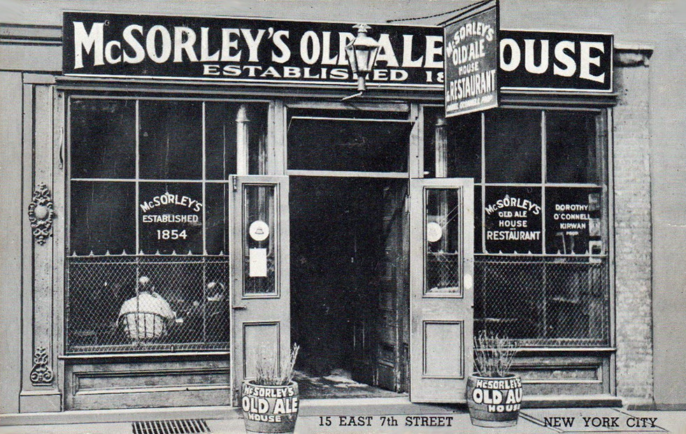 He wrote in a tribute to McSorley’s Ale House (which did not admit women until 1970), “Atrocious cleanliness and glitter and raw naked marble make the soda fountain a disheartening place to the average male. He likes a dark, low-ceilinged, and not too obtrusively sanitary place to take his ease. At McSorley’s is everything that the innocent fugitive from the world requires.”