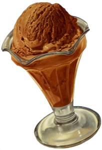 Let the buyer beware, but no doubt many restaurant patrons do in fact realize that they are willing co-conspirators in fantasy meals. Along these lines, nothing can be too chocolate-y, triple obviously outdoing double. Decorations of some sort are de rigueur. Along with whipped cream, ultra-chocolate desserts might be adorned with orange rind slivers, raspberry sauce, or dripping frosting. In 1985 the Bennigan’s chain brought their “Death by Chocolate” into the world, consisting of two kinds of chocolate ice cream, chopped up chocolate candy bars, a chocolate cracker crust, with the whole thing dipped in chocolate and served with chocolate syrup on the side.