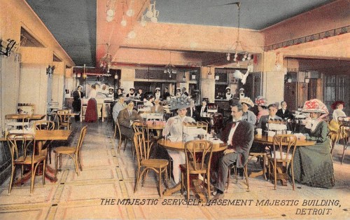 1910 Prices were lower in self-service eating places such as the newly opened Servself Lunch in Detroit’s Majestic Building which billed itself as the finest quick lunch in America. Most items, including soup, corned beef hash, pork and beans, macaroni and cheese, chicken pie, boiled eggs, sandwiches, corn flakes, baked apples, griddle cakes, and pastry, cost a dime each.