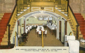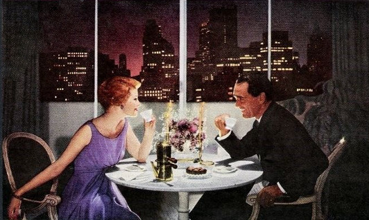 But earlier, when many married women were primarily homemakers, it was enough just to get a night off from cooking, even if the destination restaurant was nothing more than a cafeteria or a drive-in. How odd now to see a 1930s advertisement saying, Take Your Valentine to Dinner at Mrs. Adkins’, a cafeteria where “we never embarrass your pocketbook!” What? no service, no splurging, no Champagne, no tableside theatrics?