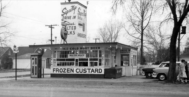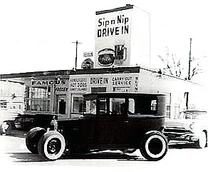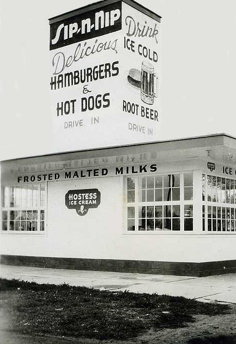 Drive-in movies were popping up about the same time that the Sip-n-Nip eateries came along. The two went together, as families and teens with cars topped off movie nights with a hamburger and milkshake.