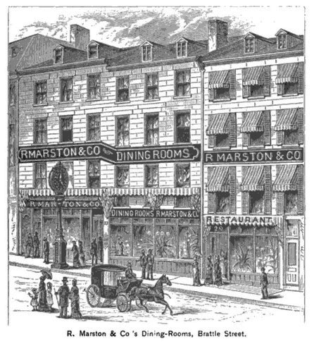 There were said to be 500 restaurants in Boston by 1885. But according to King’s Handbook for visitors to the city, other than those in hotels – and Marston’s – they were of no interest.