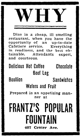 Despite serious searching I could find no advertising, nor any mention of the Raphael restaurant at all after July, 1929. In 1940 the address was mentioned as the location of a bunco party (a dice game) hosted by a political group. In 1947 the building, then occupied by a beauty supply warehouse, was auctioned for taxes. It sold for a mere $14,027 plus payment of back taxes of $11,259. The second floor was offered for rent in 1948, and it may have been then that the American Legion moved in. [Above: Could the Hippodrome have occupied the building when this advertisement ran in 1938?]