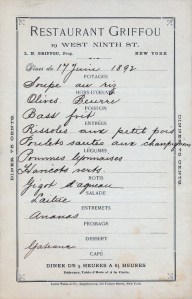 According to Junius Henri Browne’s The Great Metropolis, in 1869 there were many restaurants in New York City but only in the most expensive, such as Delmonico’s, did the diner find “silver, and porcelain, and crystal, and fine linen.” Common basement eateries, on the other hand, had “broken earthen-ware, soiled table-cloths, and coarse dishes.”