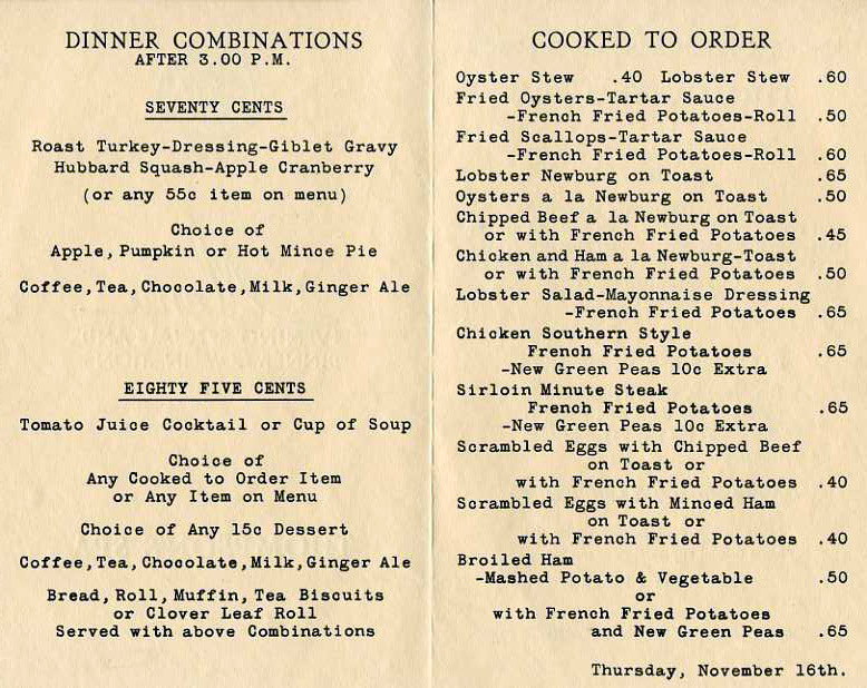 Restaurants with sawdust floors proliferated, many adopting other nostalgic (might we say hackneyed?) decor features such as red-checkered tablecloths, gas lights, pseudo-Tiffany lamps, pot-bellied stoves, and elaborate dark wood bars. O’Henry’s in NYC used a “fun” butcher shop theme, with real carcass hooks hanging from the ceiling and butcher blocks for tables. In Phoenix AZ the notion of a “hole in the wall” was redeemed from the ash pit of history by a 1970s resort where everything in sight was designed to appeal to men. At the resort’s café named The Hole in the Wall there was sawdust on the floor, tintypes on the wall, fires in the fireplaces, beer in the mugs, and beef and buffalo steaks, rattlesnake meat, “cowboy beans,” and corn on the cob on the manly menu.