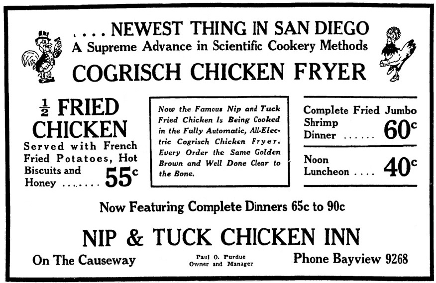 With its minaret, the building reached 60 feet in height and was visible for miles along all three major streets that crossed there. The minaret was used for advertising with neon lighting and a crescent on top. The illustrations used for this building, whether on the restaurant’s dinnerware [shown above] or in advertising, took great liberty in portraying it. [Below: April 1929 advertisement that imagines the building with two domes, four minarets, and palm trees!]