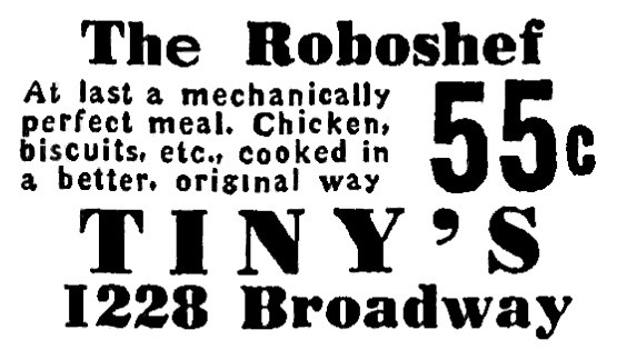 A reader of The American Restaurant would be left with the idea that Raphael’s was an elegant place catering to a clientele with sophisticated tastes. But that idea was dashed in a story written by a young reporter who spent a night there playing the part of a “shy cigaret girl.” Over the course of the evening male patrons hit on her nine times. She also observed people drinking alcoholic drinks, probably enhanced by their own whisky flasks. The crowd included teenagers. By June of 1929, the restaurant was reduced to featuring a “crystal gazer” on the balcony named Allah Mahalla. So much for elegance!