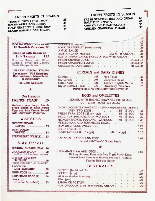 Coffee – Coffee, the beverage of sobriety and business, was basic to restaurants for most of the 19th and much of the 20th century. And, surprisingly, its price per cup stayed at 5 cents in many restaurants until the 1940s. By the 1970s it was up to 25 cents but it was increasingly losing out to soft drinks. Eventually it lost its major place as an accompaniment to meals, except maybe with desserts.