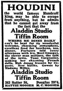 I suspect her attraction to restaurants was largely explained by the fact that she was in the theater. After years of research into the history of restaurants, I’ve noticed that opera singers and theater people lived more of their lives in public than did the average American, and that included eating in restaurants frequently. Also, the 1920s was the decade that saw the number of women eating outside the home increase dramatically.