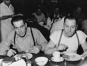 1914 “I had a sandwich that was made of dry bread, cut so thick at one end that a man would break his jaw trying to bite it. … The meat was evidently cut with a rip saw and when I tried to eat it, the bread broke, leaving the meat hanging from my mouth, at which a couple of [women] gave me the laugh.”