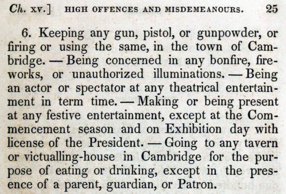 1845 Harvard forbids its students, all male then, from going to Cambridge eating and drinking places without a guardian.