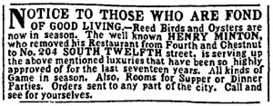 I always find it difficult to judge menus from the 19th century because our eating habits, food preferences, and food resources have changed considerably since then. It is difficult to decide whether any given menu is fine, average, or poor. The following menu was designed by a hotel steward (stewards were in charge of expenses) for a banquet in 1893. Almost certainly wines would have been served with the seven courses (which are Soup, Fish, Roast, Punch, Entree, Dessert, and Coffee).