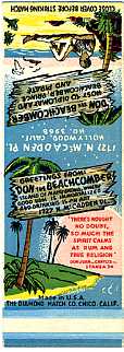 Don ran into trouble with the postwar longshoremen’s strike and decided to limit his Honolulu Beachcomber to a drinking spot. By the early 1960s he was also in the restaurant business, operating a South Seas Cabaret Restaurant, a Colonel’s Plantation Steak House, a Colonel’s Coffee House, and at least one restaurant boat. Cora’s popular Chicago Don the Beachcomber was named one of the top 50 US restaurants in 1947. She soon opened another location in Palm Springs and by 1972, when it was acquired by Getty Financial, the chain had 6 or 7 units.