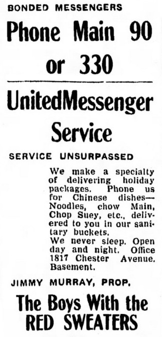 Another delivery concept — such as Uber Eats or Grubhub that bring orders from any number of restaurants — isn’t new either. Messenger services, such as the Boys With the Red Sweaters (Bakersfield CA, 1910), provided early meal delivery for Chinese restaurants. In the early 1990s Las Vegans were served by Entrees on Trays, which handled deliveries from 20 restaurants.