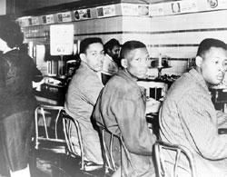 The students were told to go to the segregated snack bar in the back of the Woolworth 5 & 10 cent store, but they refused. And although the Woolworth staff would not serve them, the students also refused to leave until closing time and pledged to come back every day until they won the right to eat there.