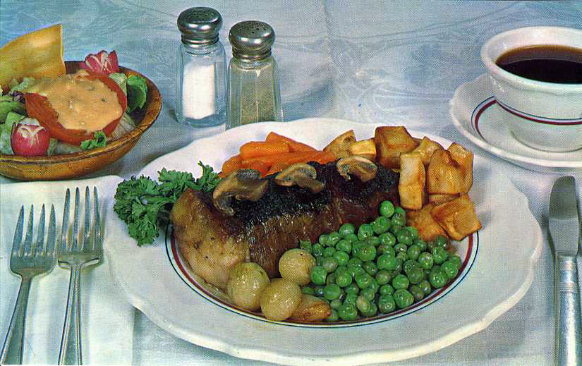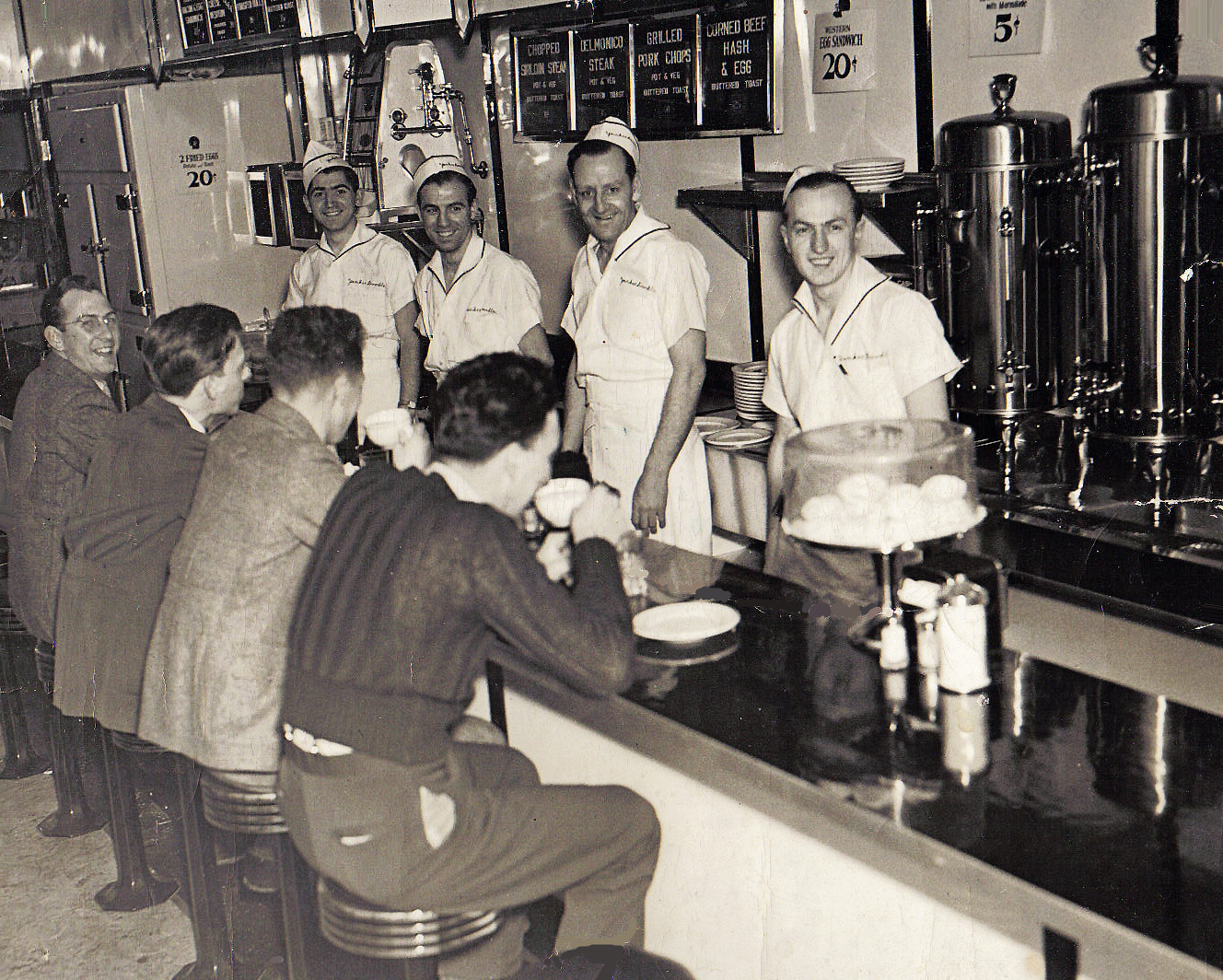 Many changes took place in American society as the soldiers returned. Suburbs sprang up with housing for growing families, shopping centers appeared, and many workers enjoyed prosperity. And a new type of eating place came into being, known as the “California coffee shop.” There had been coffee shops before that, but Southern California introduced new features, particularly in terms of design.