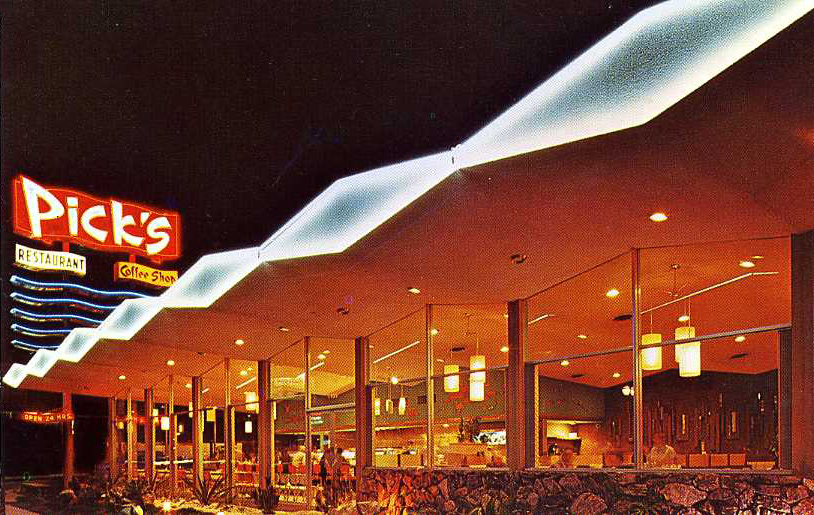 Coffee shops designed along the lines of Southern California’s soon spread across the country. In St. Louis there was the Parkmoor, Cleveland had Manners, and Denny’s, with its beginnings in California, flourished everywhere.