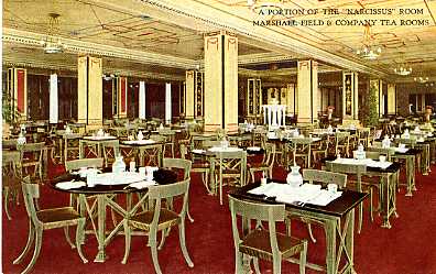 The store’s first tea room met with success. When Field’s Wabash Street annex opened in 1893, an expansion timed to the World’s Columbian Exposition, the tea room moved into that space, seating 300 and taking up the entire 4th floor.