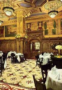 He operated his restaurants on a “scientific” basis, stressing cleanliness, nutrition, and quality while keeping prices low. In 1912 he moved the chain’s commissary into a premier new building on North Clark Street (pictured, today). Thompson’s, then with 68 self-service lunchrooms plus a chain of grocery stores, became a public corporation in 1914, after which it expanded outside Chicago and into Canada. By 1921 there were 109 restaurants, 49 of which were in Chicago and 11 in New York (with a commissary in NYC). By the mid-1920s Thompson’s, Childs, and Waldorf Lunch were the big three U.S. chains, small by comparison to McDonald’s but significant nevertheless.