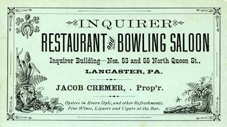 Of course it has always been common to combine places of amusement with opportunities to eat a bite. In the 1850s men looking for an evening of entertainment might go the Washington Hall Restaurant and Pistol Gallery. After consuming “Beverages and Edibles” guests could enjoy rifle and pistol practice upstairs. Given the “beverages,” it sounds like a recipe for disaster to me.