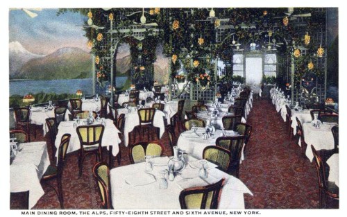 By far her most frequent meal out was dinner. She recorded eating it in restaurants 219 times. Her favorite dinner spot was a popular restaurant on 6th Avenue established in 1907 called The Alps. She also enjoyed The Hotel McAlpin, visiting their rooftop restaurant six times in warm weather. Henri’s was another favorite, as was The Tavern.