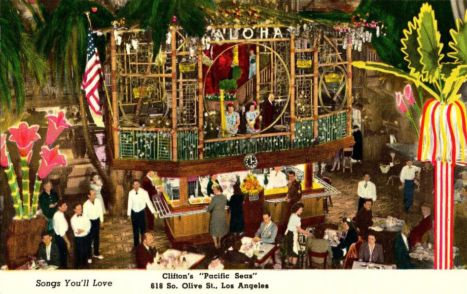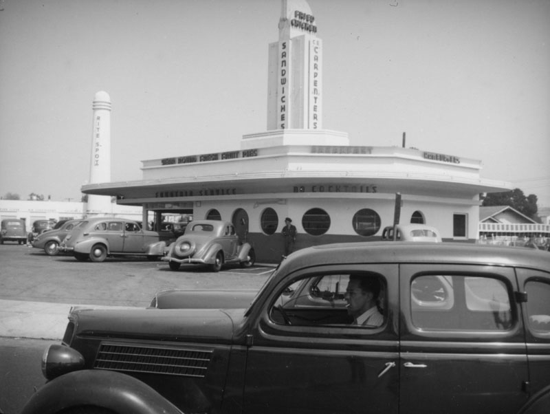 Many changes took place in American society as the soldiers returned. Suburbs sprang up with housing for growing families, shopping centers appeared, and many workers enjoyed prosperity. And a new type of eating place came into being, known as the “California coffee shop.” There had been coffee shops before that, but Southern California introduced new features, particularly in terms of design.
