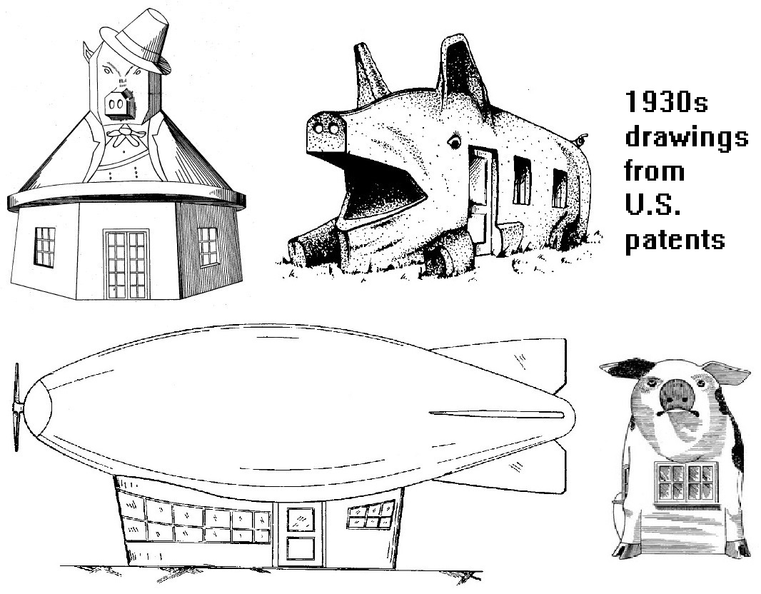 The vocabulary of Coffee Shop Modern signals its inventiveness. Terms in a glossary by Alan Hess in his book Googie Redux include: amoeboid, boomerang, cantilevered canopy, diagonals, dingbat, flagcrete, folded plate roof, free form, hyperbolic paraboloid, starburst, steel web lightener, structural truss, and tapering pylon.