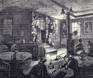 Sometimes an old-time theme was adopted, usually signaled by red-flocked wallpaper meant to conjure a bygone time of jollity that might suggest anything from the “gay ‘90s” to the “roaring ‘20s” to a brothel.
