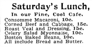 Of course red is more than warm, it’s hot! It can be difficult to imagine relaxing in some of the eating places that enveloped diners in redness. Such as, in particular, NYC’s Cattle Baron [shown above], which opened in 1967 in the Hotel Edison. If the red decor weren’t appealing enough, the restaurant’s owner seemed willing to revive an association with questionable respectability when he ran an advertisement picturing a nude female model marked with black lines indicating cuts of meat.