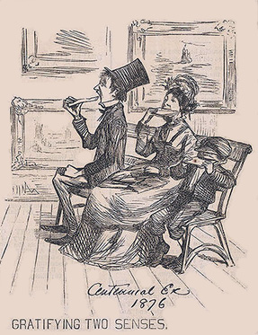 In addition to meals, most restaurants and cafés also served beer and wine, despite the attempt by temperance organizations to prevent this. A California winemaker brought his wine to the Centennial to introduce it to Easterners. For $1 he also offered a “copious luncheon” with a half pint of his “California Golden Wine,” which was considered quite a bargain by the standards of the fair. Although it seems that all the cafés and restaurants had beer and wine, it’s probable that beer sales far outstripped wine sales, judging from the final report of the Centennial Commission which reported no royalties on wine.