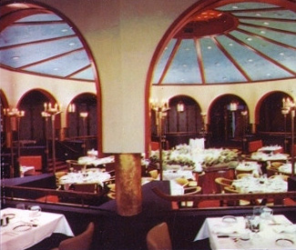 After reading Kramer’s approach to design I could only wonder what his interiors looked like. Although I could find very few images of restaurants he designed, I noticed that he seemed to like to use the color red, a color that has been linked strongly to mid-century restaurants especially attractive to male diners. I was surprised when I saw the red interiors, mainly because I don’t see redness as soothing. But perhaps the role of red in restaurant decor was to suggest luxury more than to soothe an anxious, angry diner. [above: Chez Voltaire]