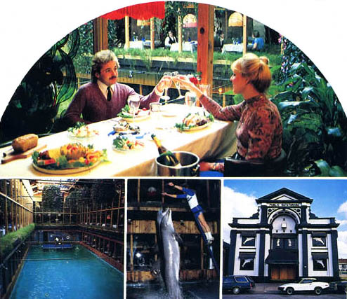 They hoped to open the restaurant one year after their January 1978 purchase, but the actual opening date was delayed by a year by city regulations, trade unions, and late equipment deliveries. Gutting the building and reconstructing the interior purportedly cost upwards of $800,000. And then there were unexpectedly high costs of leasing dolphins and providing for their care and feeding, as well as for federal inspections and trainers’ salaries.