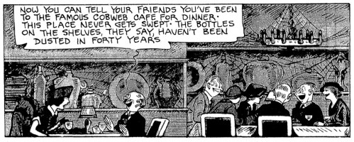 Given the general fear of unclean restaurants, it’s hard to understand the fascination with cobwebs and dirt in eating and drinking places of the 19th century and early 20th. File this under “the past is a foreign country.”