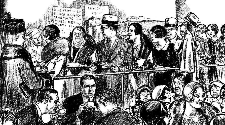 Although industry consultants advised that a salad bar using pre-prepared items could increase sales while eliminating a pantry worker, restaurant managers often found that maintaining a salad setup was actually a full-time task. Tomatoes and garbanzos had a tendency to roll across the floor, dressings splashed onto clear plastic sneeze-guards, and croutons inevitably fell into the olde-tyme soup kettle.