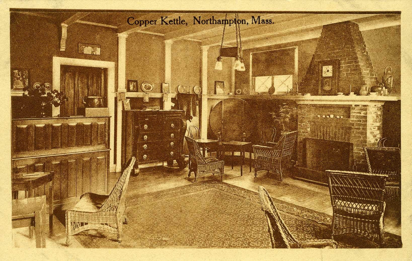 For example, a popular spot for students from Smith College was the Copper Kettle, which played a role much like the coffee shops of today. Students hung out there, read, chatted, and snacked on popcorn, ice cream, and tea. Its decor was cosy, shabby-chic style with mismatched furniture, wicker lounge chairs, posters, and window seats. Smith students were also enamored of the Rose Tree Inn, where full meals were served in a Bohemian atmosphere created by the intriguing Madame Anna de Naucaze.