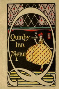 The list of specials clipped onto a 1920s menu from The Mary-Elin Tea Shop near Mount Holyoke College also shows its patrons’ fondness for sweets [thanks to Donna Albino for scans of the menu from her Mount Holyoke College collection].