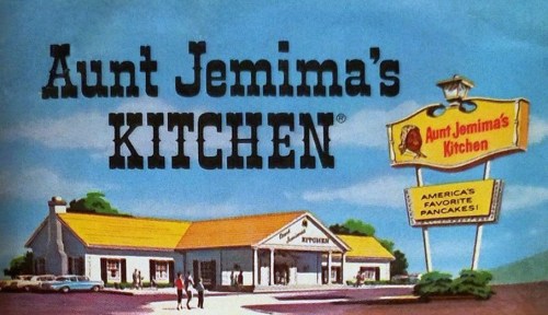 In 1960 Quaker Oats began to franchise Aunt Jemima’s Kitchens, a name variant that signaled wider menu offerings. The first opened in the Chicago suburb of Skokie IL. In 1963 there were 21 in operation in the U.S., plus one each in England and Canada. Among the states, New York led with seven Aunt Jemima’s in the first few years. Pancake restaurants, largely inspired by the high profit potential of pancakes, were the latest food trend in chain eateries at that time, with an estimated 150 around the country. One Aunt Jemima’s franchisee, Pancake Kitchens, Inc., had optimistic plans to open 36 units in the Eastern U.S. I doubt that they were all built, or that the total number of Aunt Jemima’s Pancake Houses and Kitchens across the country ever topped 100.