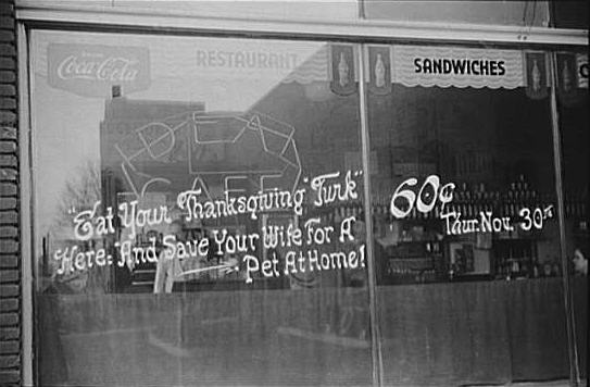 Is eating Thanksgiving dinner in a restaurant a “rather melancholic thing”? Does the menu tend toward “baby food”?