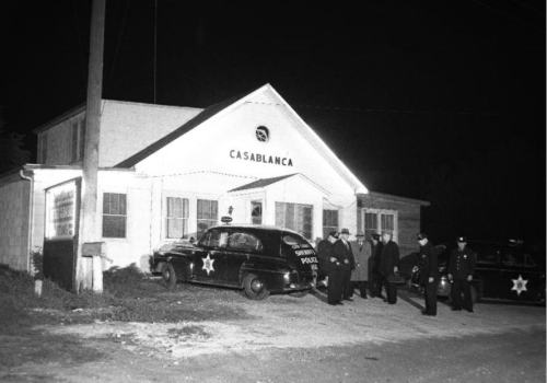 Loretta sold the roadhouse to Michael Buny around 1944 and he renamed it Casablanca after the Humphrey Bogart film that had come out two years earlier (thanks to his family member for this piece of the story). In May of 1949 he was killed in a holdup. When two hooded men entered the roadhouse one night with shotguns, he attempted to foil them by sneaking outside through the kitchen and getting a gun, evidently planning to ambush them when they left. He was shot by lookouts watching from the getaway car. Although the police rounded up suspects who went on trial in the early 1950s no convictions were secured. Years later one of the suspects was apprehended for home repair fraud.