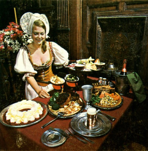 Dressing servers as pretty waiter girls continued in the 20th century and right into the present. In the 1930s, drive-ins dressed carhops in drum majorette costumes with shorts and bare midriffs; Playboy bunnies came along in the 1960s, as did topless waitresses and bordello-themed restaurants with servers in red and black corsets; in the 1980s came “breastaurant” chains such as Hooters, with Twin Peaks and Tilted Kilts arriving in the 2000s, all with servers wearing regulation big smiles and low cut tops and short shorts or micro-kilts.